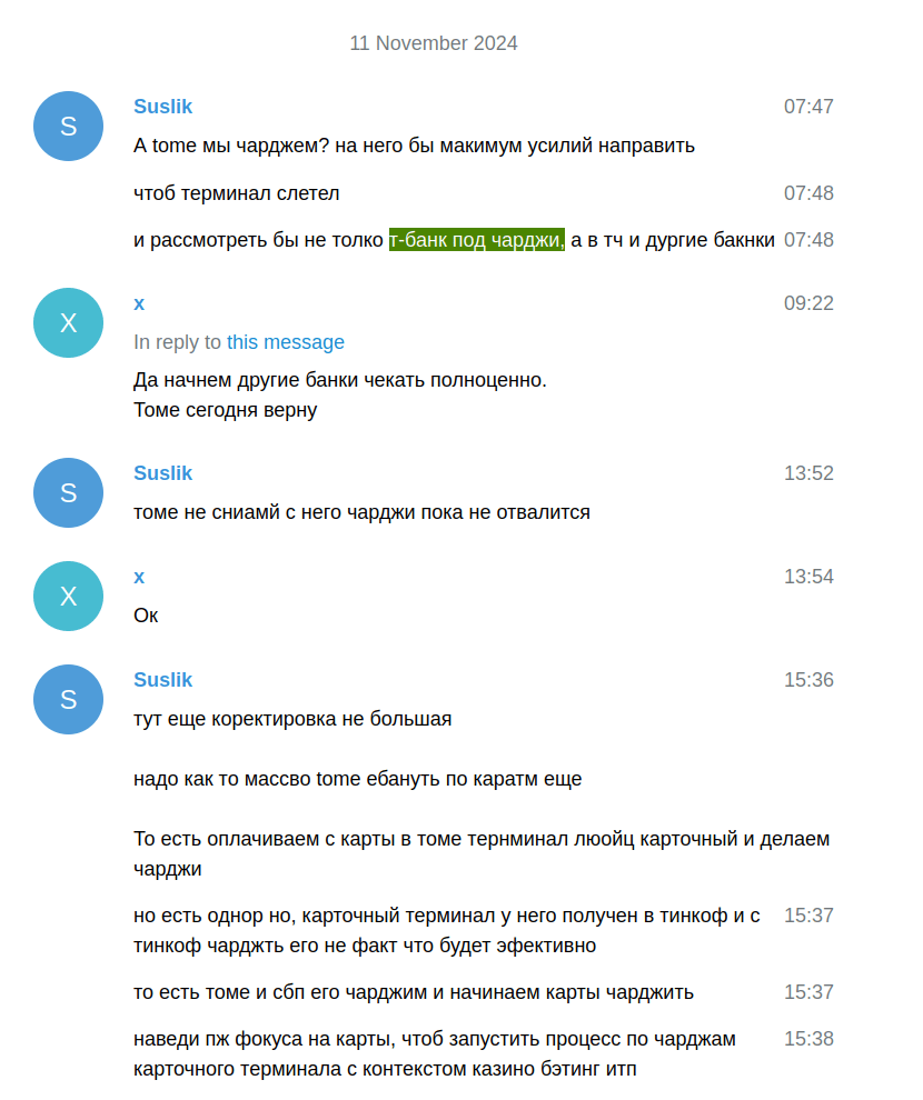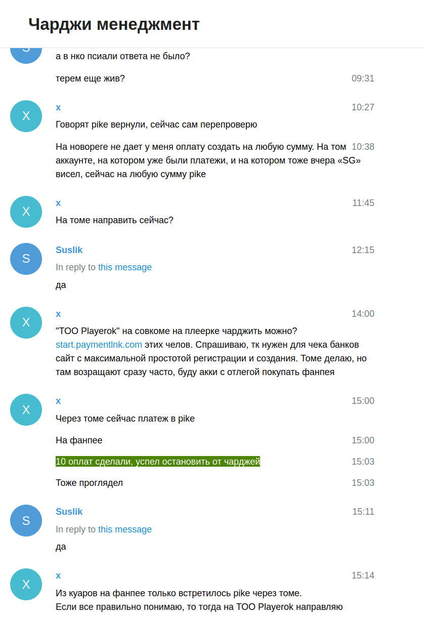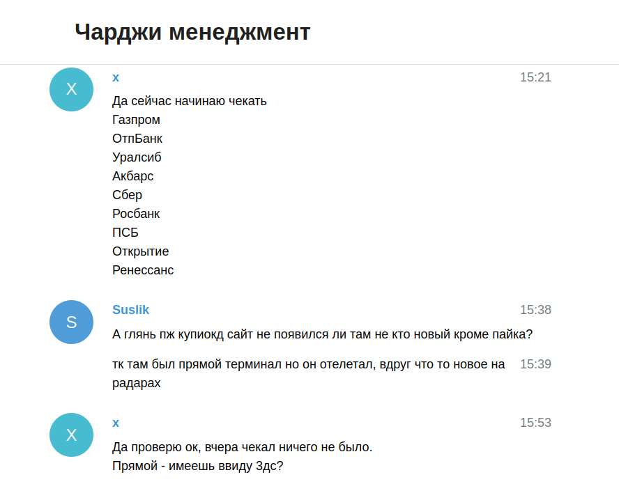 Владельцы «Платежного щита» скрывали проект по чарджингу не только от широкой публики, но также от основного штата парсеров. Sultan в групппе «Чарджи менеджмент» внимательно следил, чтобы сообщения для банков, отличались по структуре и содержанию от сообщений, которые отправлялись регуляторам в рамках основного проекта по «пресечению банков».