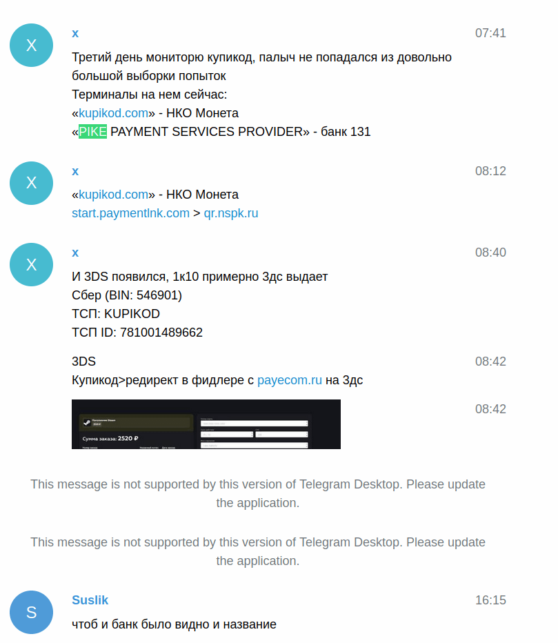 На данном скрине один из ключевых воркеров с именем “х” отчитывается о своей работе, после чего Лукьянченко спрашивает, “остался ли кто на купикод кроме пайка”, и получает ответ от “х”.