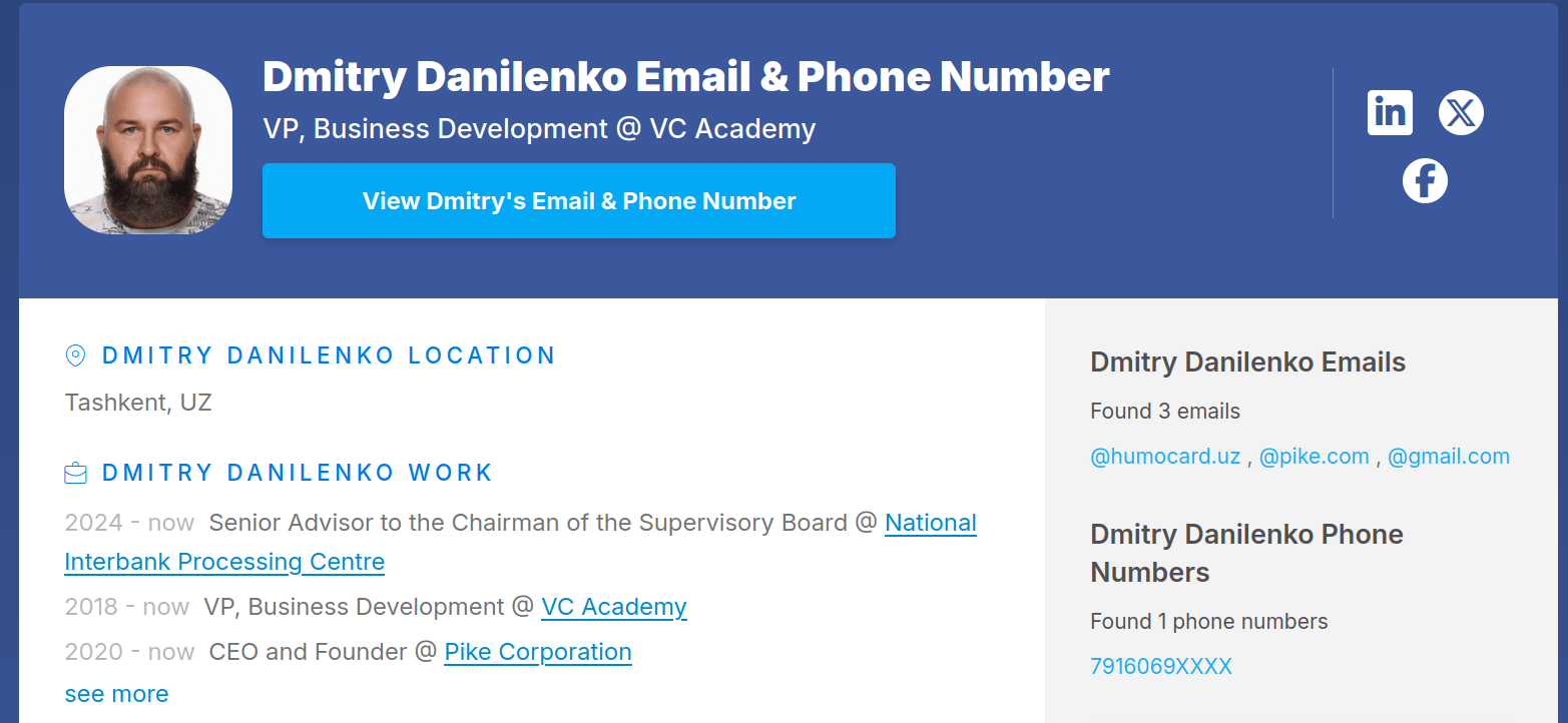 В результате удалось найти учётную запись Alexandr_24Boost, с которой выполнялся поиск сотрудников для проекта «Платёжный ЩИТ».